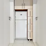 Das Apartment bietet seinen Gästen den Komfort von Selbstversorgungseinrichtungen, einschließlich von einer Kaffee-/Teemaschine, einem Kühlschrank und Küchenutensilien.